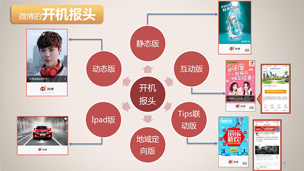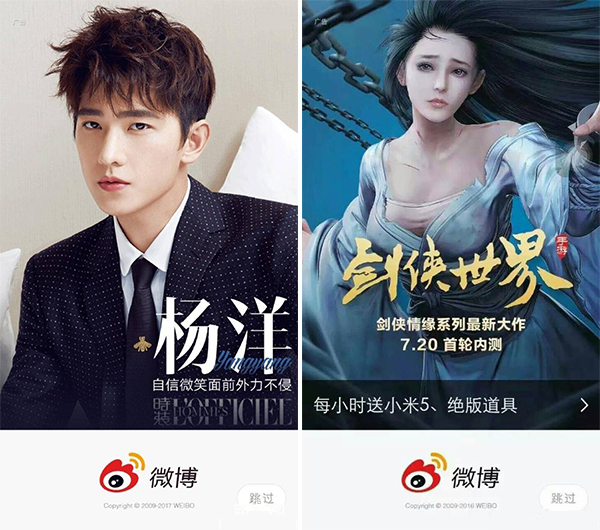 微博開屏廣告形式有開屏靜態(tài)版和開屏互動版,也可以帶鏈接跳轉到其他網站,因此吸引了大量的明星和企業(yè)做品牌宣傳。