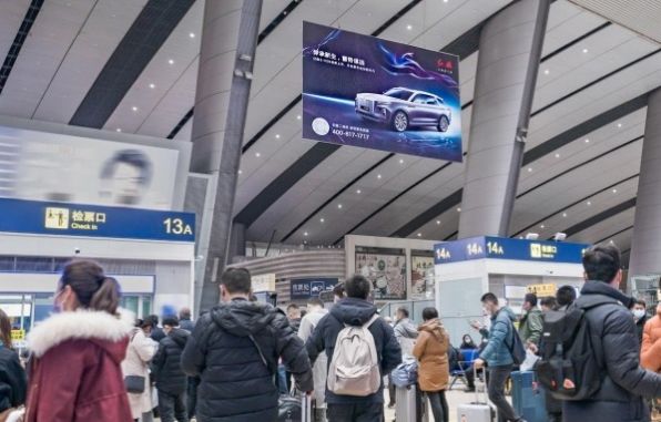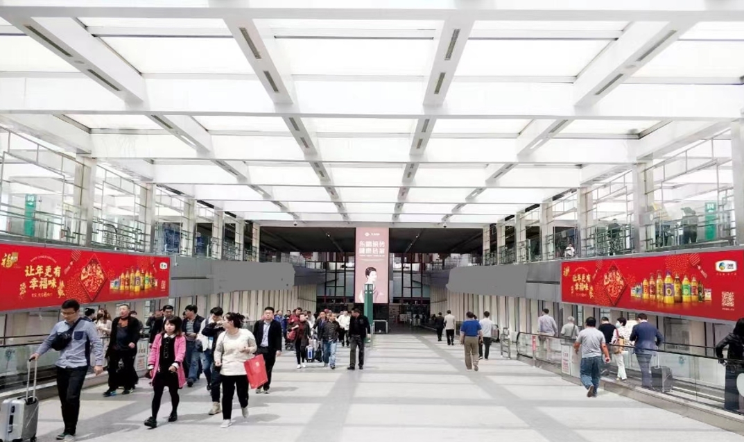 北京南站出發(fā)層候車大廳雙面吊旗廣告