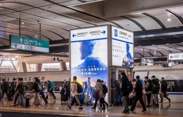 北京南站候車大廳檢票口墻貼+防撞條廣告