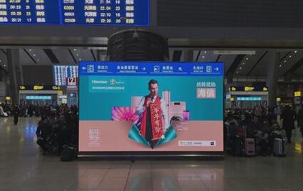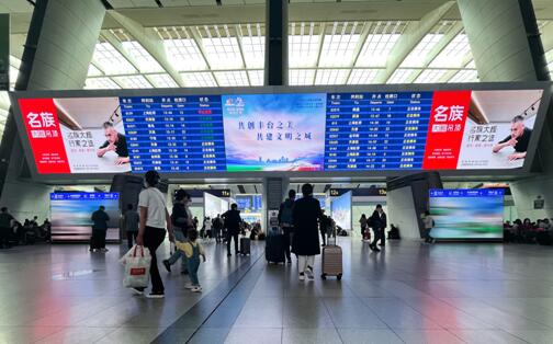 北京南站出發(fā)層候車大廳雙面吊旗廣告