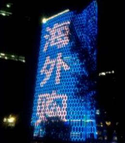 北京三里屯通盈中心: 樓頂展示面為東、西向,畫面同步播放。 樓體幅寬80米,高150米,為三里屯地區(qū)第一高樓。 最大程度影響工體北路、二環(huán)、三環(huán)、三里屯商圈人群 |