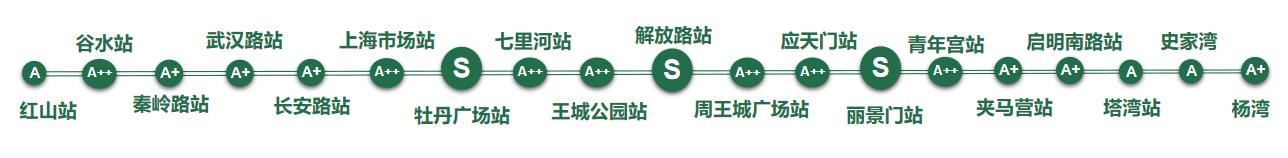 站點(diǎn)詳情:秦嶺路站、武漢路站、長安路站、夾馬營站、啟明南路站、楊灣站