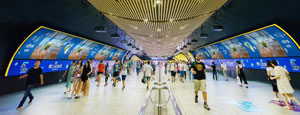 上海地鐵廣告-電子媒體--炫動投影畫廊 全球地鐵系統(tǒng)內(nèi)最長最大投影媒體,兩側(cè)各有23*2米 位于徐家匯1/9號線換乘通道,日均客流達26萬,匯聚中高端時尚白領(lǐng)人群 支持動畫、TVC、電子海報等,可制作各種大型創(chuàng)意效果 |