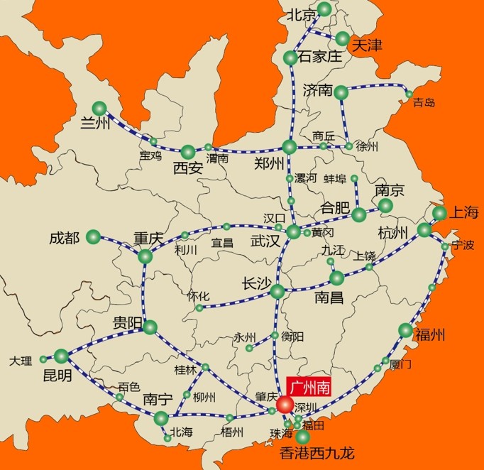 中國(guó)鐵路廣州局集團(tuán)有限公司管轄的特等站,是華南地區(qū)最繁忙的高鐵站。 廣州南站連接京廣高速鐵路、廣深港高速鐵路、貴廣高速鐵路、南廣鐵路、廣珠城軌和粵西沿海鐵路,是粵港澳大灣區(qū)、泛珠江三角洲地區(qū)的鐵路核心車(chē)站,是廣州鐵路客運(yùn)樞紐的站點(diǎn)之一。 每日均到發(fā)列車(chē)808列次,均為高鐵動(dòng)車(chē),可直達(dá)北京、上海、杭州、深圳、南京、武漢、長(zhǎng)沙、鄭州、宜昌、岳陽(yáng)、西安、合肥、南昌、成都、貴陽(yáng)、南寧、桂林、濟(jì)南、青島、上饒、石家莊、太原、新會(huì)、信陽(yáng)、珠海等經(jīng)濟(jì)發(fā)達(dá)城市。 現(xiàn)每日開(kāi)行列車(chē)可以輻射到環(huán)渤海經(jīng)濟(jì)圈、中部經(jīng)濟(jì)圈、長(zhǎng)三角經(jīng)濟(jì)圈、珠三角經(jīng)濟(jì)圈、西南經(jīng)濟(jì)圈、海峽經(jīng)濟(jì)圈、西北經(jīng)濟(jì)圈共七大經(jīng)濟(jì)圈。 |