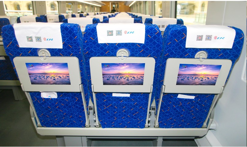 頭枕媒體規(guī)格按照現有動車組列車頭巾片規(guī)格及廣告發(fā)布面積設置,經統(tǒng)計其中一等座單頭巾56塊,二等座雙頭巾664塊,媒體材質為聚酯纖維,固定方式使用尼龍粘條固定于座椅外套之上。