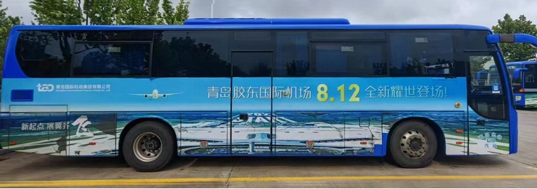 青島機場巴士廣告,青島膠東機場巴士快線廣告,萬事成傳媒