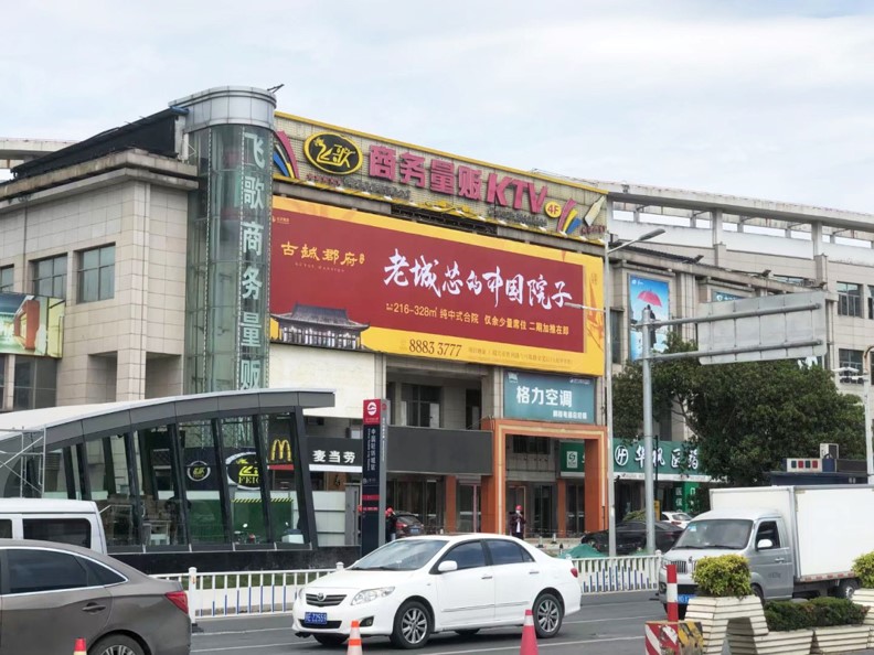 優(yōu)勢分析:104國道是連接越城區(qū)與柯橋區(qū)的交通主干道,車流量繁忙,廣告牌位于古纖道大酒店屋頂,位置醒目,匯集最大客流目光。
