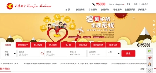 天津航空(Tianjin Airlines)是世界500強(qiáng)海航集團(tuán)的成員企業(yè),由海航集團(tuán)和天津市政府共同出資組建,扎根環(huán)渤海地區(qū)經(jīng)濟(jì)中心的天津市。
