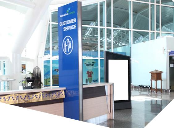 Placed next to Customer Service Counter at International Departure Hall, seen by passengers That hanging around the Departure Hall specially those who seek for Information Desk And other services needed.