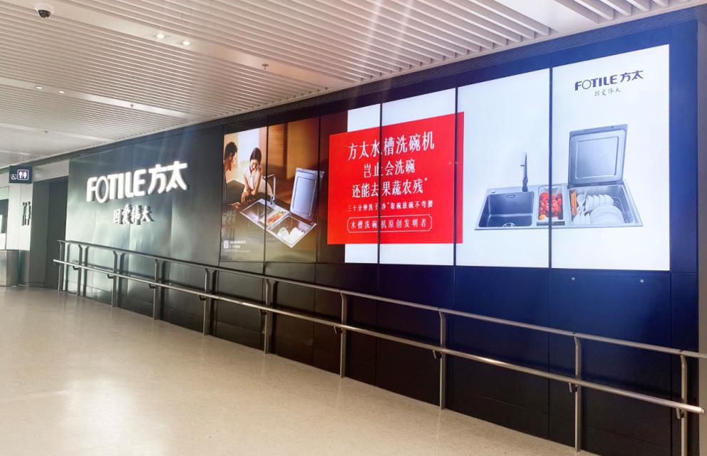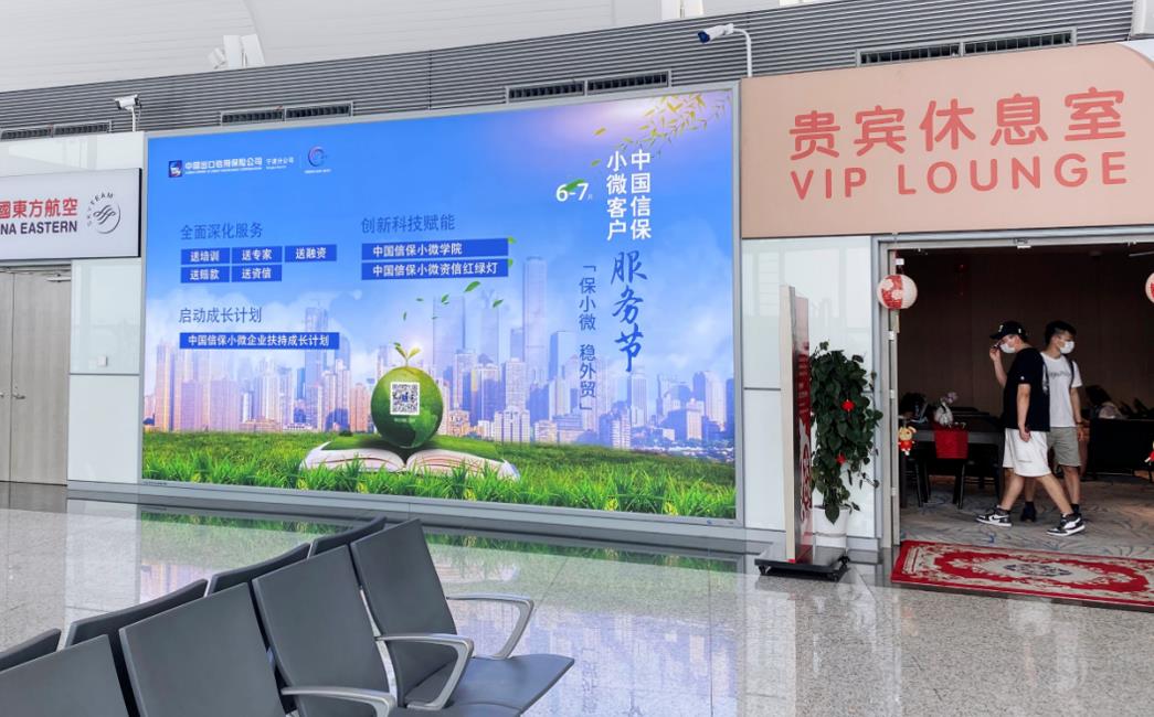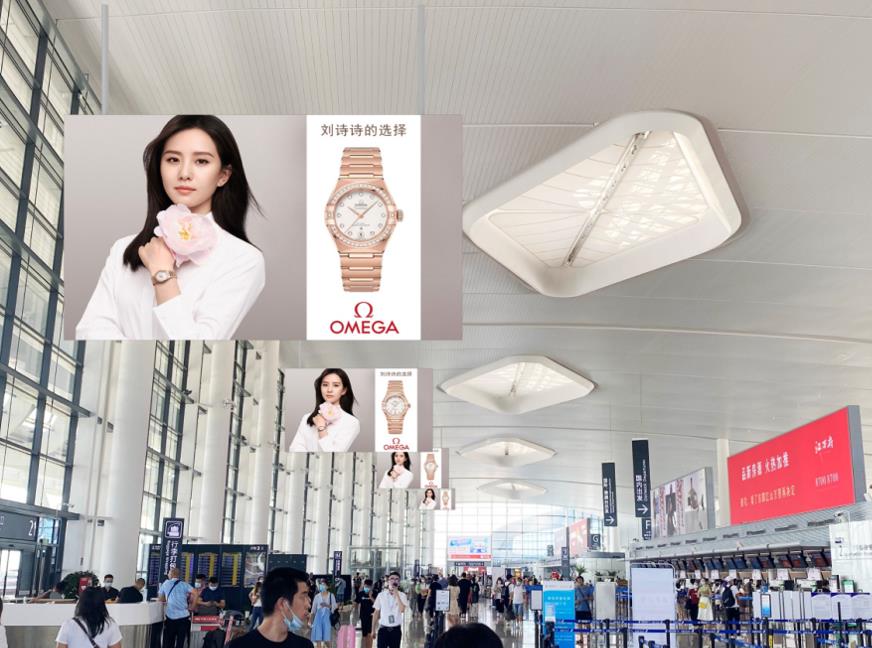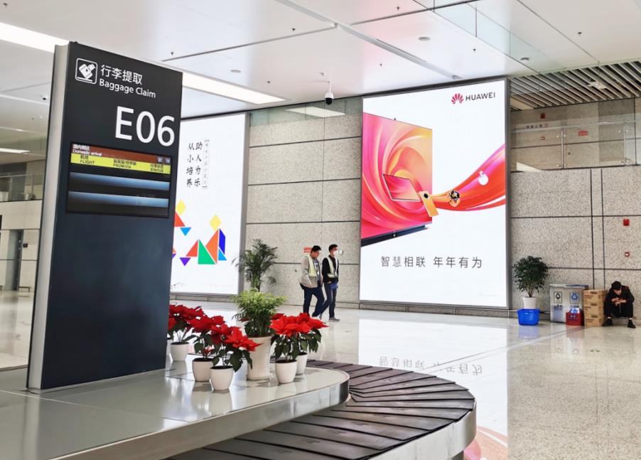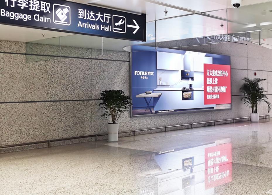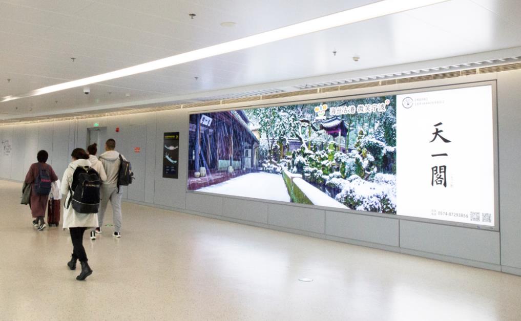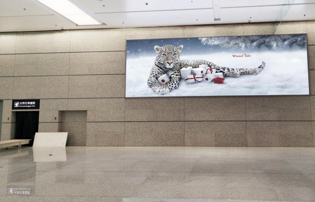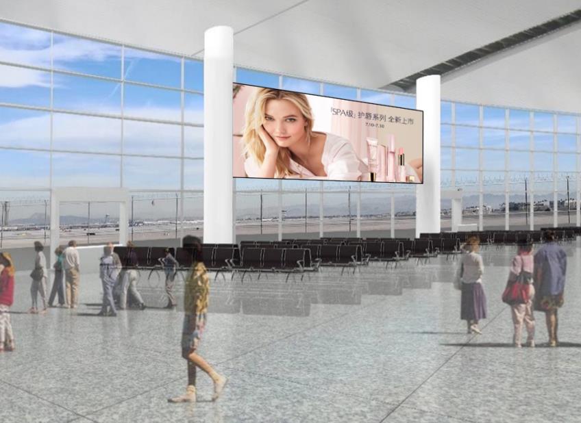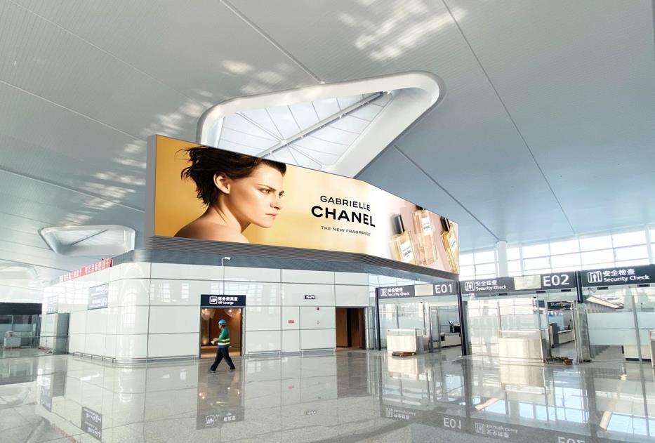 T2國內(nèi)出發(fā)安檢通道右側(cè)墻體上方led大屏廣告