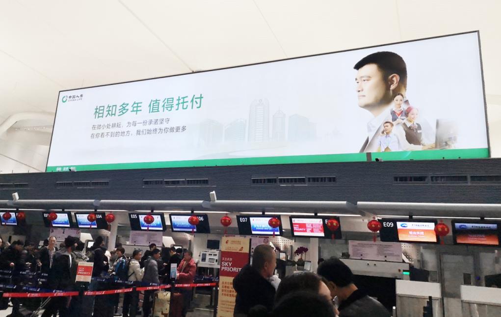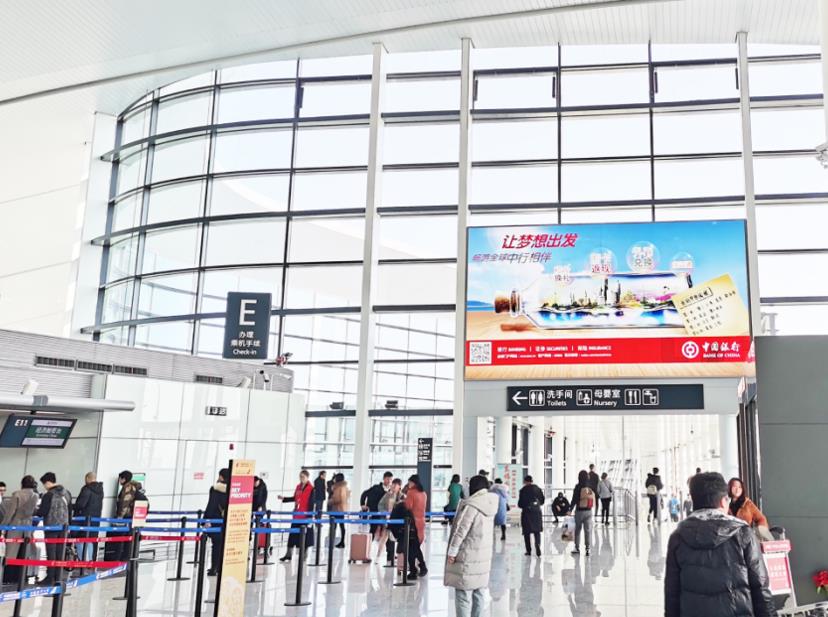 媒體位置:T2國內(nèi)出發(fā)安檢區(qū)域值機島后方墻面