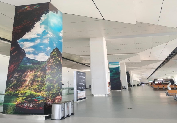長治機場一層安檢等候區(qū)包柱燈箱廣告