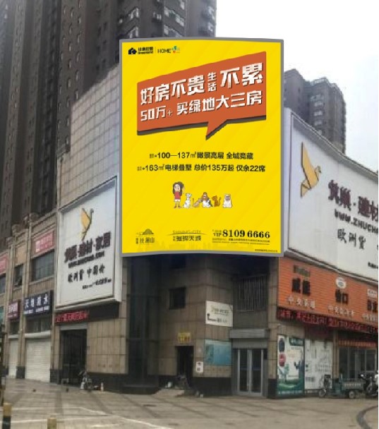 該廣告位為我公司獨(dú)家經(jīng)營,位于城市中心商圈,城市標(biāo)志性建筑物華聯(lián)商廈樓面,面積約504m²,商業(yè)氣氛濃厚,緊鄰蘇寧廣場、隴海步行街,地理位置顯要;媒體垂直路面,極具視覺沖擊力。