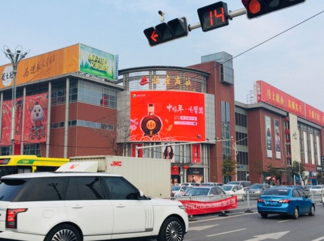 大屏位于濟(jì)寧太白中路龍貴購物中心樓體,濟(jì)寧龍貴購物中心是目前為止?jié)鷮幬ㄒ灰患覔碛休p奢品牌的商場。