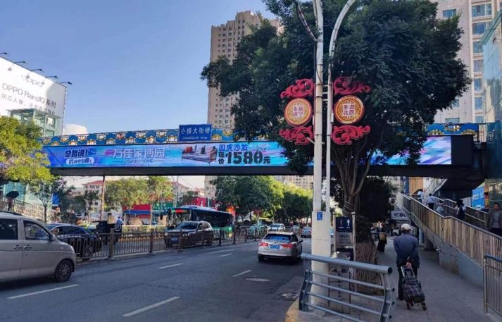 媒體簡(jiǎn)介:西川南路跨線橋LED顯示屏,雙面同時(shí)投放,覆蓋面廣。車流80萬/日,人流40萬/日。