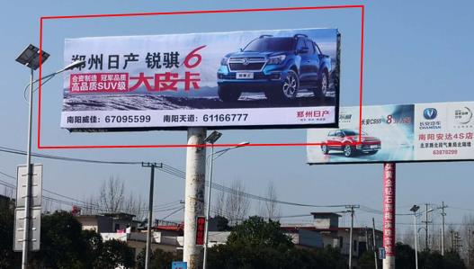 媒體形式 :國(guó)道大牌 媒體規(guī)格:橫18mX6m=216㎡ 備注:無夜間照明 媒體說明:該廣告位位置稀缺,南陽高速遮山站出入口,廣告牌輻射西部幾個(gè)縣城,鄭州,洛陽方向進(jìn)南陽入口,該處車流量大、受眾人群眾多。該區(qū)域地理位置開闊,大面廣告幅面直接帶來強(qiáng)烈的視覺沖擊力,優(yōu)越的地域優(yōu)勢(shì)大大提升廣告發(fā)布的品牌形象。 |