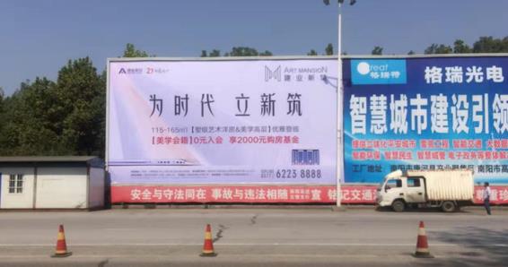 媒體形式 : 噴繪廣告牌 媒體規(guī)格 : 上:40mX7m=280㎡ 媒體說明 :該廣告位位于人民路與信臣路(原312國(guó)道)交叉口,弧形噴繪大牌,北城主入口,廣告牌輻射城北,城西幾個(gè)縣城??梢暶娣e大,可視距離遠(yuǎn),車流量:20萬/天;人流量:30萬/天,可視距離遠(yuǎn),視覺沖擊力強(qiáng),廣告效果絕佳。 |
