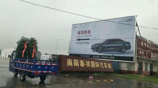 媒體形式 : 三面翻廣告牌 媒體規(guī)格 : 16mX8m=128㎡ 媒體說明 :該廣告位位于雪楓路迎賓大道北300米路東 泰祥汽車城大門口,三面翻大牌,可視面積大,可視距離遠(yuǎn),車流量:對(duì)面中商農(nóng)批發(fā)市場(chǎng)是南陽最大的食品流通批發(fā)市場(chǎng),老國(guó)道,汽車城內(nèi)已入住開業(yè)10家4S店,下半年還有4家左右開業(yè),35萬/天;人流量:30萬/天,可視距離遠(yuǎn),視覺沖擊力強(qiáng),廣告效果絕佳。 |