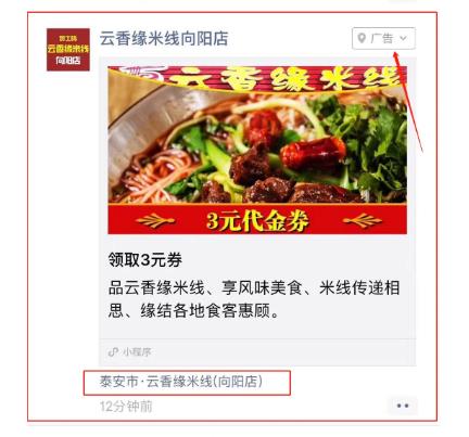 朋友圈圖文廣告由五或六個部分的內(nèi)容構成,包含廣告主頭像&名稱、外層文案、外層圖片、文字鏈、用戶社交互動等, 本地推廣圖文廣告還包括門店標。