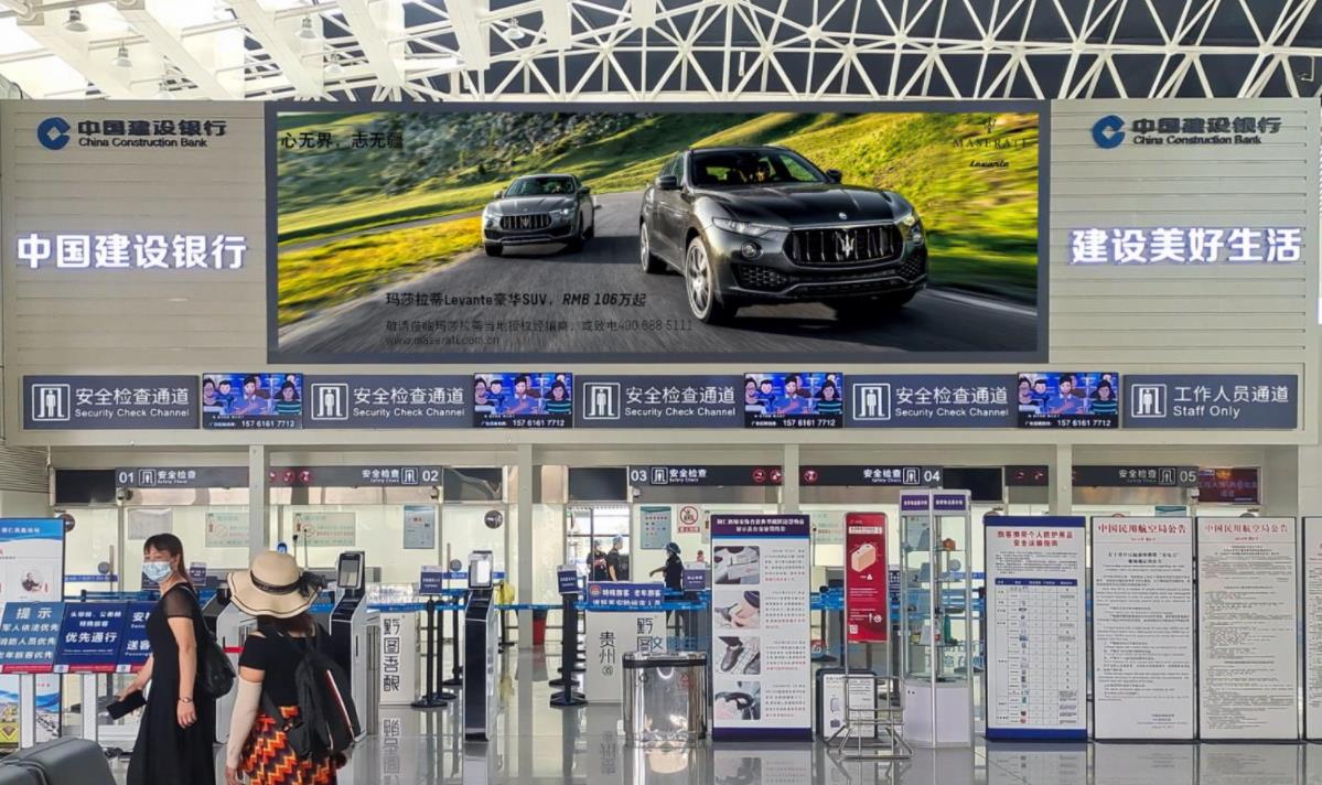 銅仁鳳凰機場出發(fā)安檢區(qū)led大屏廣告,萬事成傳媒