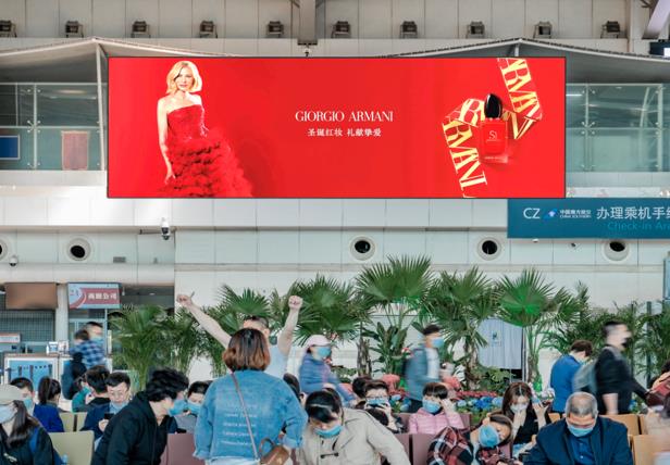 大連周水子機場國內航站樓出發(fā)大廳led大屏廣告,萬事成傳媒