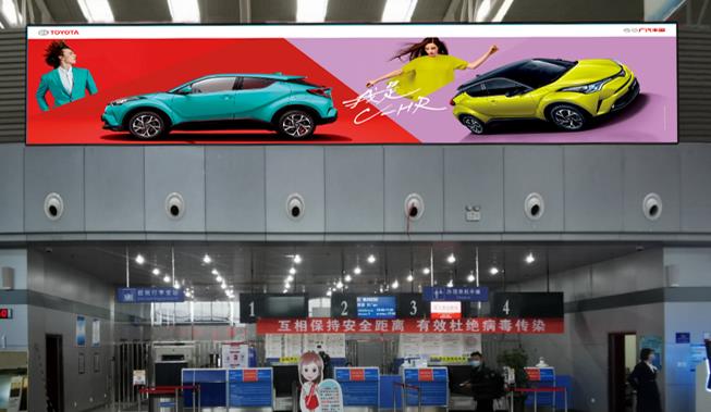 張掖甘州機(jī)場混合大廳辦票島 行李轉(zhuǎn)盤上方led廣告