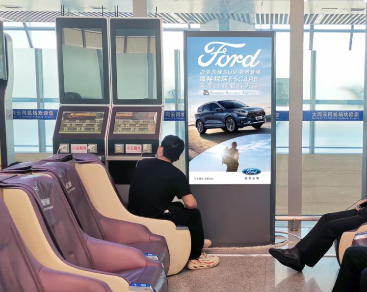 大同云岡機(jī)場T2航站樓國內(nèi)出發(fā)大廳電子刷屏廣告,萬事成傳媒