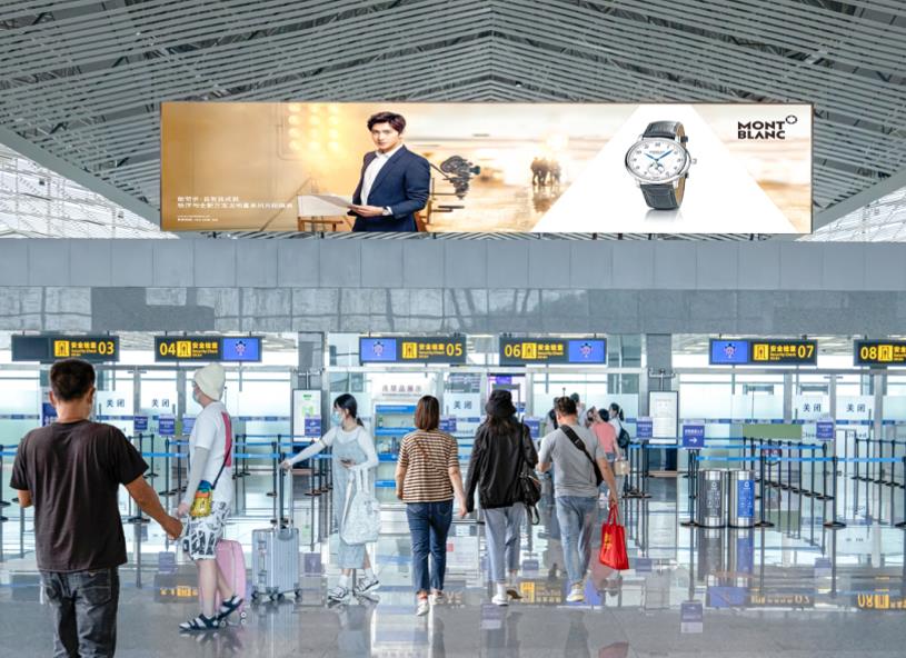 張家界荷花機(jī)場出發(fā)大廳安檢上方led大屏廣告