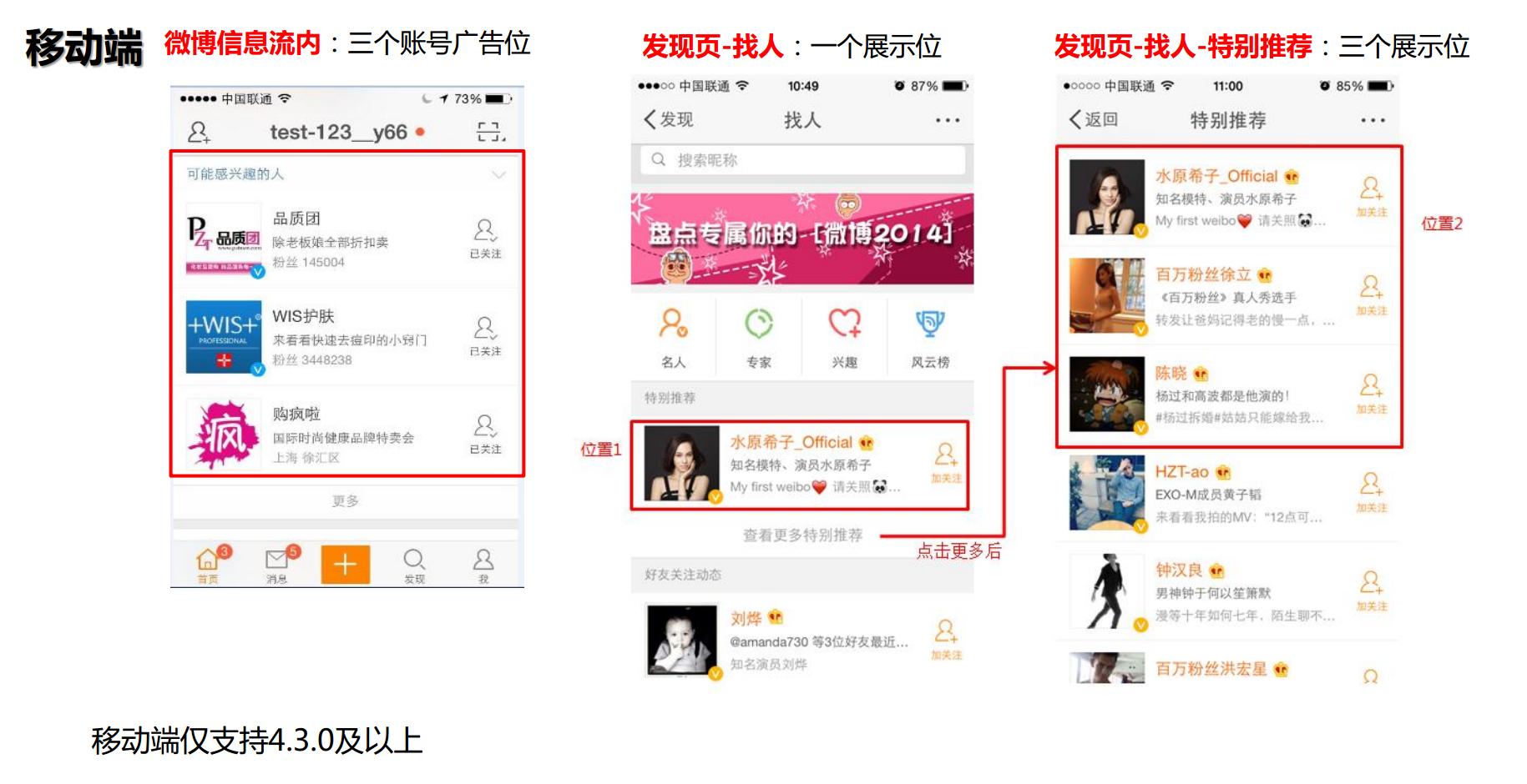 3. 流量龐大,到達率高。微博等內(nèi)容資訊類的用戶量大,并且處于獲取信息的目的,用戶使用這些應(yīng)用的頻率會相對較高,在各種各樣的信息流中插入形態(tài)風格相似的廣告,更容易被用戶刷到。