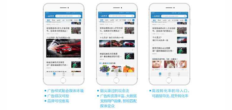 目前安裝超2億注冊(cè)用戶,月活躍用戶,超6500萬,日ADU超2400萬,每人每天日均使用時(shí)長超43分鐘,一點(diǎn)資訊整合鳳凰,小米硬件等資源,精準(zhǔn)營銷,實(shí)現(xiàn)品效合一。