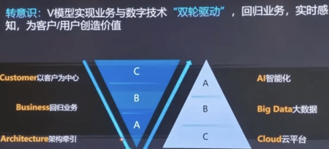 例如,華為在數(shù)字化轉(zhuǎn)型中意識(shí)到,數(shù)字化轉(zhuǎn)型是兩個(gè)詞,其中數(shù)字化是手段,轉(zhuǎn)型才是目的,轉(zhuǎn)型具體轉(zhuǎn)什么?是“五個(gè)轉(zhuǎn)變”:轉(zhuǎn)意識(shí),轉(zhuǎn)模式,轉(zhuǎn)組織,轉(zhuǎn)文化,轉(zhuǎn)方法。以轉(zhuǎn)意識(shí)為例,大多數(shù)企業(yè)談數(shù)字化轉(zhuǎn)型講得做多的是“ABC”:人工智能、大數(shù)據(jù)、云平臺(tái),而華為認(rèn)為這些只是技術(shù)手段,首先要轉(zhuǎn)的是意識(shí),即“CBA”:以客戶為中心,業(yè)務(wù)主導(dǎo),架構(gòu)牽引。