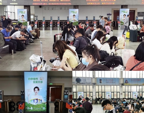 本次四季南山首先在??谡?、海口東站、淄博北站、新鄉(xiāng)東站、瀘州站、長(zhǎng)沙站等全國(guó)重點(diǎn)樞紐站投放廣告,集中在候車(chē)大廳、出站通道、進(jìn)站大廳等人流密集區(qū)域,全天候、高頻率、強(qiáng)滲透,開(kāi)啟強(qiáng)勢(shì)霸屏模式。
